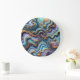 Dark Teal Blue Amethyst Purple Gold Marble Pattern Large Clock