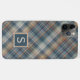 Contemporary dark teal blue, tan, brown, beige, taupe, and ivory cream white tartan plaid pattern. With room to customize or personalize with a monogram or initial of your choice. Beautiful, modern, and cool cover for the trend-savvy and art-loving hip trendsetter, artsy motif lover who wants to protect their phone from dust and dirt, wear and tear. This design is available in Apple iPhone 6, 7, and 8 Plus, 10 or X, XR, XS, 11, 12, 13 Mini, 14, 15 Plus, and Pro Max cellphone cases. Show off your style, look fashionable trendy, and feel stylish with a unique design on a mobile device accessory of your choice.