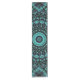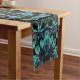 Bring vibrant, calming energy into your home with this eye-catching table runner. The design features an intricate mandala pattern with a mesmerizing radial symmetry in shades of turquoise and teal against a dark, nearly black background. The mandala design is made up of delicate floral motifs and flowing lines that radiate outward like petals, creating a sense of depth and motion.
