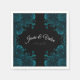 Chic & Stylish-Wedding Napkins. The Teal Roses Wedding Theme is a blend of modern and traditional floral accents with teal roses contrast and accent the black background wonderfully. These elegant florals are perfect for all your wedding décor and stationery needs. This beautiful design is most suitable for weddings where you have chosen to incorporate a bit of turquoise, and dark blue-green.