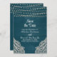 Add a touch of bohemian charm to your wedding invitations with this rustic and whimsical Dark Teal Rustic String Light Save the Date Card design. The dark teal wooden background sets the stage for a magical celebration, adorned with glowing string lights that create a romantic atmosphere. Delicate white floral lace patterns frame the corners of the invitation, adding an elegant and feminine touch. The combination of a vintage script font and a legible serif font in white creates a beautiful contrast against the dark background, ensuring that all the details are easily readable. This invitation is perfect for couples seeking a unique and enchanting wedding theme.