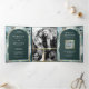 Dark Teal Seafoam Floral Arch QR Code Wedding Tri-Fold Invitation