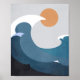 Dark Teal Terracotta Abstract Ocean Waves Poster