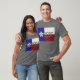 My 11 yo wore adult XL (5’7” 165#). The 8yo is small framed. She wore adult small and tied it in the back. Grandma wore adult large with long sleeve shirt underneath. Tall girl adult medium. Dark haired male adult large. Good quality dark Heather gray, Gildan brand shirt. -it was next up from basic choice and cost about $20 per shirt. Not too thick or thin. Washed and dried well, no major shrinkage. Not see-through. Can wear a bra under it fine. Screen print is just as shown and well done, front and back.