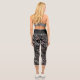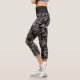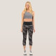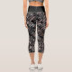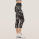 Dark Tone Feather Pattern on Black Printed Capri Leggings