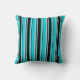 This throw pillow design features a dark turquoise, black, and lavender colored stripes pattern.