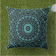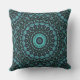 Dark Turquoise Floral Mandala Outdoor Pillow
