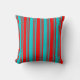 This throw pillow design features a dark turquoise and red colored stripes pattern.