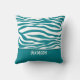 Dark Turquoise Zebra Stripes; Personalized Throw Pillow