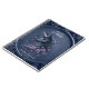 Dark Unicorn Portrait in a Round Frame – Magical Fantasy Artwork with Roses & Hearts. This artistic unicorn portrait depicts a magical, dark unicorn with a silver horn, surrounded by delicate purple and pink roses. Small purple hearts float dreamily around the majestic mythical creature. The round frame is decorated with dark blue flowers and leaves, giving the motif a romantic, mystical feel. The soft blue background emphasizes the dreamy and fairytale-like mood of the artwork. Perfect for fantasy fans, romantics, and anyone who loves magical unicorn art.