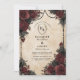 A dramatic and romantic wedding design featuring lush vintage red roses, delicate black lace accents, and a timeless antique parchment background. Perfect for couples seeking a passionate, gothic-inspired aesthetic for their special day.