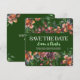 Dark Wild Flowers wedding Save The Date feature simple frame wild flowers made with stylish watercolor. Dark and colorful wedding invitation. Green version.