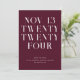 Share your wedding date with a bold, romantic touch using this minimalist Save the Date card in dark wine (also known as burgundy plum). The full written date layout creates a striking editorial statement, while the rich wine tone adds depth and sophistication. This design works beautifully for fall and winter weddings, evening celebrations, vineyard venues, and refined, modern romantic styles. Personalize the names, date, and location to match your celebration. Available as both a printed card and a digital download.