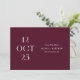 Share your wedding date with bold, romantic elegance using this minimalist Save the Date card in dark wine (also known as burgundy plum). The striking editorial date layout on the front makes a refined visual statement, while the back features space for a full couple photo to add warmth and personality. The rich wine tone brings depth and sophistication, making this design a beautiful choice for fall and winter weddings, evening celebrations, vineyard venues, and modern romantic aesthetics. Personalize the names, date, location, and photo to make it your own. Available as both a printed card and a digital download.
