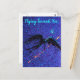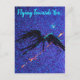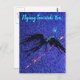 Dark winged figure flying across the space postcard