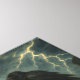 Mystical fantasy art of a dark wizard seated on a throne, flanked by wolves and ravens under a stormy sky.