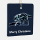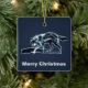 A ghostly, dark wolf (Canis lupus) casts a moonlight shadow as it move across the land. Customizable text reading, Merry Christmas" appears on both front and back. You may change the background color.