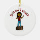 Lightweight, smooth, pure white ornament with nice sheen. Perfect size to be seen from across the room ... and to attract closer inspection! Price was great for ordering enough for the whole family! Clear, bold black design just as requested. Matches the order exactly. Just so nice!
