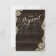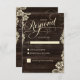 Dark Wood and Lace Rustic Wedding Response Card. Invite your guests to share in your special day with this beautifully designed response card. Featuring an elegant lace overlay on a rustic dark wood background, this card exudes rustic charm and timeless sophistication. The ornate floral lace details add a touch of vintage romance, perfectly complementing a rustic, barn, or outdoor wedding theme. Guests can easily indicate their attendance, making it convenient for you to finalize your wedding plans. Let this exquisite card be the first beautiful impression of your wedding celebration.