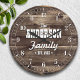Fun, personalized design. Makes the perfect gift for a housewarming, wedding, or any occasion! Faux, dark wood grain design with your family name and year established personalized front and center.