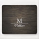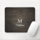 Are you bored with your old mouse pad? Try this new dark wooden panel board mouse pad with customizable monogram initial and single name. (photo generated, not true wood.) Cuts, grain and wear make this wood look very realistic.