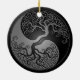 This stylized yin yang features a twisted tree growing from the center of the design. The intricate branches that extend into the top of the pattern are a mirror image of the roots that hang below. This stunning design is a beautiful representation of the balance of nature.