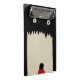 This cute but scary design features a little child in red dress waiting in front of a door in a dark room. The door is surrounded by the shadow monster with an open mouth and sharp teeth. This is a bit spooky but cute design for halloween lovers.