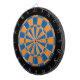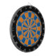 Dart Board: Orange, Blue, And Black Dartboard With Darts