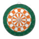 White, Orange, And Dark Green Colored Dart Board Game Including 6 Brass Darts