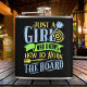 Show your flair with the DartRise Vinyl Wrapped Flask 6 oz., proudly stating "Just a Girl Who Knows How To Work the Board." This flask is a celebration of your love for darts and adds a fun, empowering touch to your drinkware collection. Its sleek design and portability make it an ideal gift for women who hit the bullseye every time.
