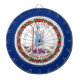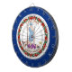 Celebrate Virginia's proud heritage with this dartboard, prominently displaying the iconic design of the Virginia flag. Featuring a blue field with the state seal of Virginia in the center, surrounded by a wreath of Virginia creeper, this flag represents the state's history and its significance in American culture.