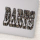 Pictured is the word Darts in a dimensional design made with dartboard images