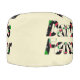 The high-contrast lettering and dynamic layout make this pouf a strong statement piece for game rooms, dart spaces, or fan corners.