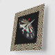 Pictured is a Dartboard with a dart in the bullseye framed by a dartboards picture frame