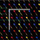 Stylish black fabric patterned with red, blue and yellow darts