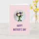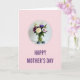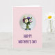 Designed with a tender, garden-fresh look, this card centers on a bouquet arranged in a clear glass vase, framed by a dashed purple circle. A creamy white rose opens in the middle, while magenta and deep violet daisy-like blooms fan out around it like a friendly embrace ❤️. Small white filler flowers and leafy green stems fill in the gaps, giving the arrangement a full, cared-for feel, like something gathered with love. The vase sits on a bright white surface, and two smooth dark gray river stones rest nearby as quiet, steady companions. Soft, diffused light falls across the petals and glass, adding gentle highlights and calm shadows that make the scene feel close and intimate 🌼. Near the bottom, the words “HAPPY MOTHER’S DAY” appear in uppercase deep purple lettering, centered against a pale pink background. The dashed purple circle sits above the text, enclosing the flowers while the stones flank the vase on either side.
