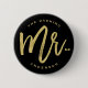 Dashing Mr Gold Brush Script Bow Tie Wedding Party Pinback Button