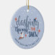 Celebrate the holiday season with this customizable Christmas ornament that features a whimsical illustration of a child riding a sled on a snowy winter day, paired with elegant script typography that reads, “Dashing Through the Snow.” Modify this design by adding your own text on the front and back, then upload a favorite photo to create a one-of-a-kind keepsake that’s perfect for gifting to family or friends.