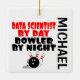 This is a unique ornament featuring the quote "Data Scientist by Day Bowler by Night", perfect for any data scientist that loves bowling.
