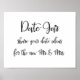 A simple and beautiful custom calligraphy "Date jar state your date ideas for the new Mr. & Mrs." wedding sign.