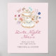 Enhance your bridal tea party with our Blush Pink Bridal Tea Date Ideas Poster. Featuring hand-painted watercolor florals in deep purple, dusty blue, and blush pink, this poster on a blush pink background with cream and gold teacups and a cute pink butterfly adds a touch of elegance and whimsy. Inspire guests with creative date ideas that will bring joy to the bride and groom's journey. Make this special day unforgettable with our charming and cohesive poster.