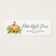 This design forms part of our Fall Bridal Shower collection with a beautiful watercolor pumpkin surrounded by sunflowers and eucalyptus leaves. Coordinating stationery and party supplies are available to help you throw an autumn shower your guests will never forget! **PLEASE READ BEFORE ORDERING** If you make changes to the shape or size or choose another product and the design is cropped in any way or doesn't look right on the page you will need to use the Live Design Service to have someone adjust the layout for you, unless you are comfortable doing it yourself. There is no manual check or intervention between the placement of the order and the printing, so what you see on the screen is what will be printed and shipped to you. With this in mind please also triple-check for any spelling mistakes or incorrect information before you place your order.