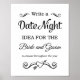 This darling Date Idea sign will be the perfect compliment to your wedding reception or party. This design features a combination of black fonts, with a heart banner as an accent, asking your guests to leave a note with their date night ideas.