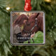 Create a personalized square metal frame ornament with a photo of your horse, your names and year on a dated custom silver ornament with "Merry Christmas" message, perfect for the horse owner, lover, or caretaker or as part of a horse-themed gift.
