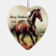 Dated Christmas Running Brown Horse Ceramic Ornament