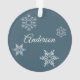 Cute snow globe with deer and tree and date on the front and simple snowflakes and name on the back.