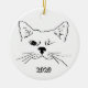 Dated Cute Smiling Winking Cat Drawing Ceramic Ornament