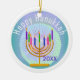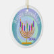 Beautiful Hanukkah ornament with nine candle menorah reads "Happy Hanukkah"! You can easily add the current year to this keepsake Happy Hanukkah keepsake!