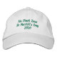 The design was easy to do with a number of options both the hat style, color and so forth. These aren't some printed letters, these are the real deal stitching. The two hats arrived quickly. I've used Zazzle in the past for shirts a number of times and this is the first time for a hat. Zazzle is absolutes the best in every respect; customer service, product selection and results. The embroidery was just right. My artwork was turned into a professional look thanks to Zazzle.