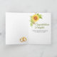 A lovely Daughter Bride wedding Day Congratulations card with watercolor floral yellow sunflowers, foliage, gold rings and string lights with a dark green border. The perfect way to say congrats to the bride and wish her all the best on her marriage. Personalize with her name, date of the wedding and inside message.